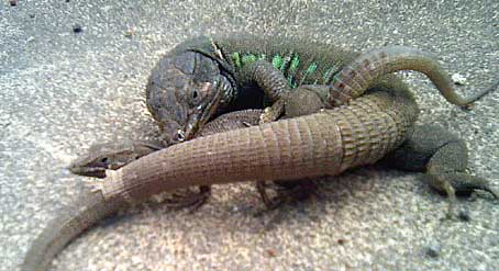 Peters, W.C.H. & Doria, G. (1882) - Note erpetologiche e descrizione di una nuova specie di Lacerta delle Isole Canarie. - Annali del Museo Civico de Storia Naturale di Genova, (1) 18: 431-434.  Bischoff, W. (1985) - Die Herpetofauna der Kanarischen Inseln. IV. Die Atlantische Eidechse, Gallotia atlantica (PETERS & DORIA, 1882). - herpetofauna, 7 (37): 15-24.  ×Die Beziehungen der kanarischen Eidechsen der Gattung Gallotia zu den anderen Lacertiden werden diskutiert. Die äußerlich klar zu erkennende Gallotia atlantica gliedert sich in 2 Unterarten G. a. atlantica und G. atlantica mahoratae. Der Lebensraum und die derzeit bekannten Daten über die Lebensweise werden beschrieben. Hinweise zur Haltung dieser Art im terrarium schließen den Beitrag ab. Gonzáles, P. & Pinto, F. & Nogales, M. & Jiménez-Asensio, J. & Hernández, M. & Cabrera, V.M. (1996) - Phylogenetic relationships of the Canary islands endemic lizard genus Gallotia (Sauria: Lacertidae), inferred from mitochondrial DNA sequences. - Molecular Phylogenetics and Evolution, 6 (1): 63-71.  ×Phylogenetic relationships among species and subspecies of the Canary Island endemic lizard genus Gallotia are inferred base on nucleotide sequence of fragments of 12S ribosomal RNA and cytochrome b mitochondrial genes. The four morphologically established species have also been recognized at the molecular level. Relative affinities among species follow an eatsern-western geographic transect. The nearly extinct species Galloti simonyi from the most western island of El Hierro is closely related to the common western species Gallotia galloti. The nearest branch to this pair is Gallotia stehlini from the central island of Gran Canaria, and finally, Gallotia atlantica from the two eastern and geologically oldest islands appears as the most distantly related species of the group. At the statistical level, four subspecies can be recognized in G. galloti, but only two in G. atlantica. Bischoff, W. (1998) - Gallotia atlantica (Peters & Doria, 1882) - Atlantische Eidechse, Purpurarien-Eidechse. - In: Bischoff, W. (Hrsg.): Handbuch der Reptilien und Amphibien Europas. Die Reptilien der Kanarischen Inseln, der Selvagens-Inseln und des Madeira Archipels. Wiesbaden (Aula). 236-264.  Molina Borja, M. & Rodriguez-Dominguez, M.A. (2004) - Evolution of biometric and life history traits in lizards (Gallotia) from the Canary islands. - Journal of Zoological Systematics and Evolutionary Research, Berlin, 42 (1): 44-53.  ×The aim was to study as to how biometric and life-history traits of endemic lacertids in the Canary Islands (genus Gallotia) may have evolved, and possible factors affecting the diversification process of this taxon on successively appearing islands have been deduced. To that end, comparative analyses of sexual dimorphism and scaling of different body, head and life-history traits to body size in 10 species/subspecies of Gallotia have been carried out. Both Felsenstein`s independent contrasts and Huey and Bennett`s `minimum evolution` analyses show that male and female snout-vent length (SVL) changed proportionally (sexual size dimorphism not changing with body size) throughout the evolution of these lizards and all within-sex biometric traits have changed proportionally to SVL. Life-history traits (size at sexual maturity, clutch size, hatchling SVL and mass, and life span) are highly correlated with adult female body size, the first two being the only traits with a positive allometry to female SVL. These results, together with the finding that the slope of hatchling SVL to female SVL regression was lower than that of SVL at maturity to female SVL, indicates that larger females reach maturity at a larger size, have larger clutches and, at the same time, have relatively smaller hatchlings than smaller females. There was no significant correlation between any pair of life-history traits after statistically removing the effect of body size. As most traits changed proportionally to SVL, the major evolutionary change has been that of body size (a ca. threefold change between the largest and the smallest species), that is suggested to be the effect of variable ecological conditions faced by founder lizards in each island.