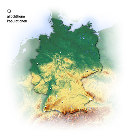 Introduced in Cadolzburg, Dresden (Loschwitz), Frankenberg, Freiburg (Messe), Hannover, Hutthurm, Inzlingen, Kreis Ludwigsburg, Lörrach-Stetten, Mühlheim an der Ruhr, Passau (Veste Oberhaus, Erlautal, Mannheim, Obernzell, Jochenstein), Stahle, Stuttgart (Wilhelma), Ulm (Galgenberg).
